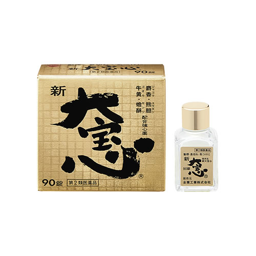 麝香(ジャコウ) 1mg、ニンジン乾燥エキス 6mg(原生薬33mg)、牛黄(ゴオウ) 3mg、蟾酥(センソ) 5mg、熊胆(ユウタン) 1mg、レイ羊角(レイヨウカク) 3mg、サフラン 8mg、沈香(ジンコウ) 12mg、真珠(シンジュ) 3mg、d-ボルネオール 1.5mg