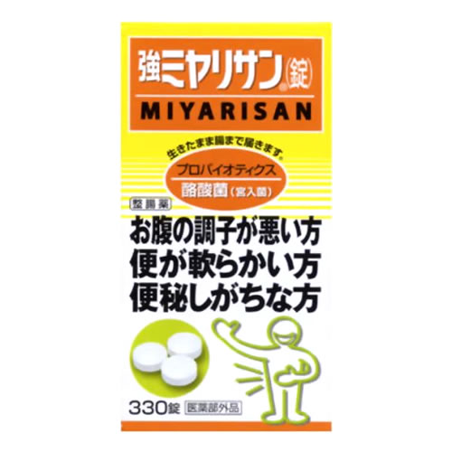 宮入菌末 270mg、添加物として乳糖水和物、トウモロコシデンプン、タルク、結晶セルロース、ステアリン酸マグネシウム、白糖を含有する。