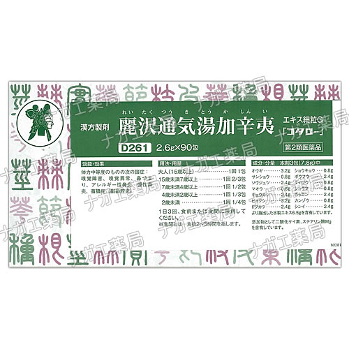 葛根湯加川芎辛夷(かっこんとうかせんきゅうしんい)+玉屏風散(ぎょくへいふうさん)などが配合された嗅覚障害や嗅覚異常を中心に鼻詰まり、アレルギー性鼻炎、慢性鼻炎、蓄膿症、副鼻腔炎などに効果のある漢方薬です。