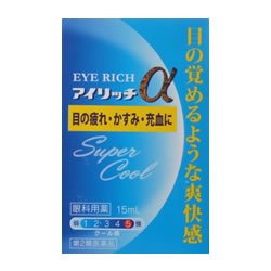 目の疲れ、結膜充血、眼病予防(水泳のあと、ほこりや汗が目に入った時など)、紫外線その他の光線による眼炎(雪目など)、眼瞼炎(まぶたのただれ)、ハードコンタクトレンズを装着しているときの不快感、目のかゆみ、目のかすみ(目やにの多い時など)