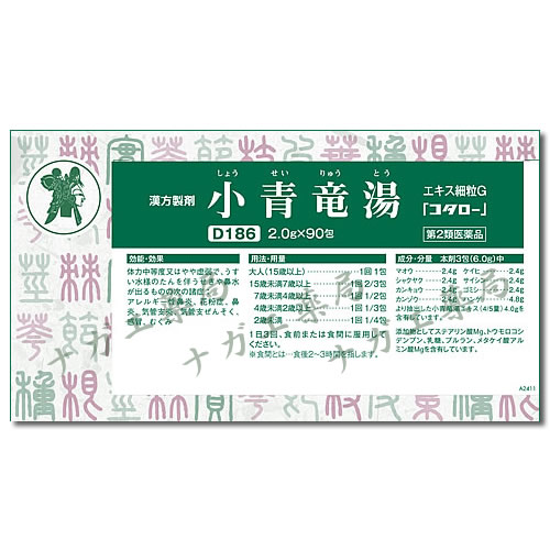 抽出エキス 3.12g(セッコウ5.0g、ハンゲ3.0g、キョウニン・マオウ各2.0g、カンゾウ・ケイヒ・サイシン・シャクヤク各1.50g、ゴミシ・ショウキョウ各0.75g)