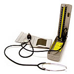 血圧の変化を自分の目と耳で確認できます。病院でも使われている水銀式の血圧計です。脈音を正確に捕らえる大型の聴音板を使用しています。大きくて見やすい目盛り板とワンタッチ着用のストッパー付の腕帯で一人でも簡単に計測できます。医療機器製造販売業許可番号:13B3X10017製造中止品