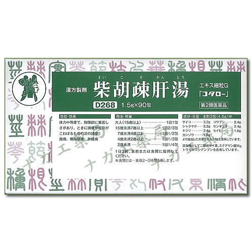 不安、不眠、イライラ感などがあり、胸の両脇部がすっきりせずその部分が張って苦痛を感じる人に対して用いられます。神経系に働きかけ、高血圧に伴う症状や更年期のイライラ・不眠・動悸など(更年期神経症)を改善します。
