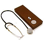 人体各部の生体音を聴診する、病院でも使われている本格的な聴診器です。身体に当てる部分が両面にあるタイコス型で、とても使いやすくなっています。とても簡単な組み立て式で付属の箱に保管でき、場所を取りません。聴音板、イヤーチップが付属します。医療機器製造販売業許可番号:13B3X10017