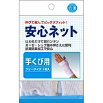 安心ネット 手くび用は、患部にフィットする伸縮性のネット包帯です。ズレない、ムレない、手を通すだけ。手首・手の甲の保護や、シップ薬の押さえにご使用ください。