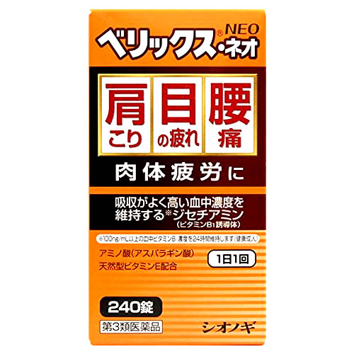 補酵素(コエンザイムA)となってエネルギーの産生に重要な働きをするパントテン酸カルシウムとフルスルチアミン、ビタミンB2、ビタミンB6を配合し、三大栄養素(脂質、タンパク質、糖質)を効率よくエネルギーに変える助けをするので、疲れたカラダにすぐれた効果をあらわします。