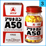 アリナミンA50は、ビタミンB1誘導体フルスルチアミンを1錠中50mgを主成分とし、さらにビタミンB6、ビタミンB12、ビタミンB2を配合した黄色の糖衣錠です。