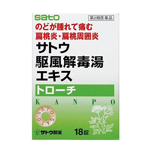 サトウ駆風解毒湯エキストローチは、本来ならうがいをしながら、ゆっくり服用する「駆風解毒湯」という漢方処方の特徴をトローチという形にすることで使いやすくした医薬品です。