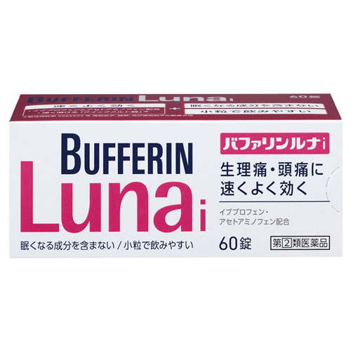 「バファリンルナ」は、2つの鎮痛成分「イブプロフェン」と「アセトアミノフェン」のダブル処方が、生理痛や腰痛などのつらい症状を痛みの中枢と末梢の両方からすばやくブロックします。