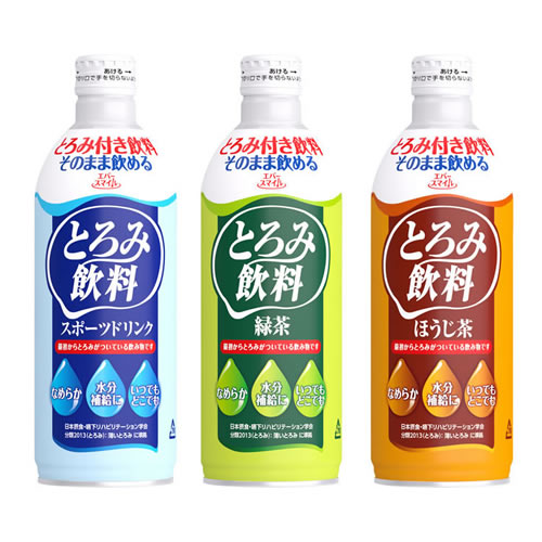 とろみ付、均質なとろみによる安心安全、再栓可能なボトル缶入りといった3つの特徴があるとろみ飲料です。HOTとCOLDにかかわらず安定したトロミを実現してそのままお飲みいただくことができる飲料です。味もスポーツドリンク、緑茶、ほうじ茶の3種類がございます。