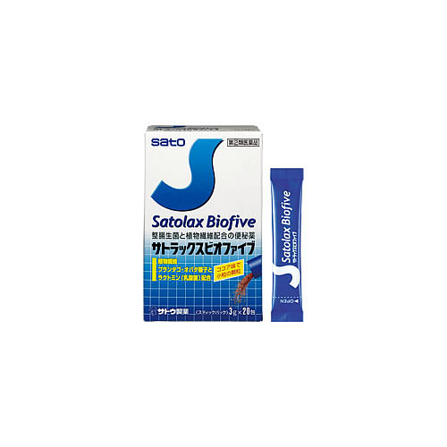 「サトラックスビオファイブ」は、食物繊維を多く含むプランタゴ・オバタ種子を配合し、腸内で膨張することにより、自然に近いお通じを誘う植物性の便秘薬です。ラクトミン(乳酸菌)と糖化菌が腸内で有用菌として働き、便秘や便秘に伴う諸症状の緩和を助けます。