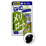 DHC メリロート 40粒 は、メリロートから抽出したエキスにジャワティーエキス、イチョウ葉、トウガラシを配合したサプリメントです。 メリロートはマメ科の植物です。芳香性物質クマリンを豊富に含みます。夕方スタイルが気になる方におすすめのサプリメントです。