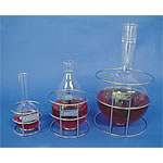ID:436-01-26-03 ・内径×内高(mm) 139×122 適応フラスコ 500/1000ml ・用途 転倒防止用のステンレス製安全フラスコホルダー。・※写真のフラスコは別売り"