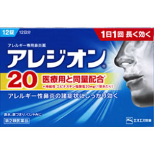 アレジオン20は原因物質の作用を阻害するとともに放出自体を抑えることでアレルギーによる鼻炎症状に優れた効果を発揮する「エピナスチン塩酸塩」を配合したアレルギー専用の鼻炎症状改善薬です。