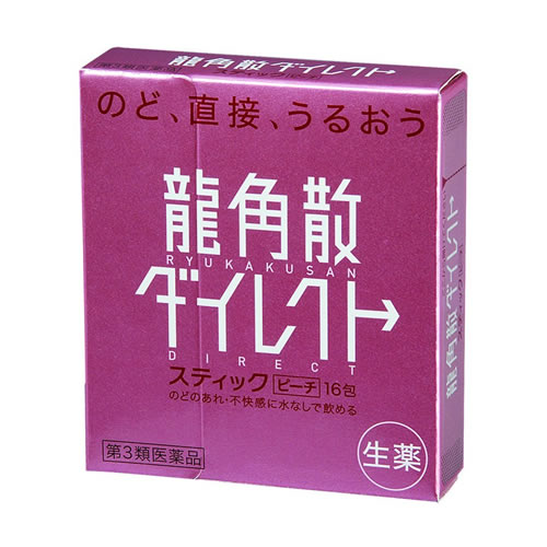 クララNという名前で長く親しまれてきた薬ですが、「龍角散ダイレクト」という名前で新登場です。からだに優しい生薬がノドに直接作用し、弱ったノドの働きを回復させます。水なしで服用できますので、どんなときも、どこにいても、「水なしで、のど、直接、うるおう」のど薬です。