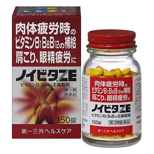 「ノイビタZE」は、吸収性、持続性に優れたビタミンB1誘導体「オクトチアミン」をはじめ、「ビタミンB6」や「ビタミンB12」 などのビタミンを加えた、肩こり、腰痛、眼精疲労に優れた効果を発揮する処方のお薬です。