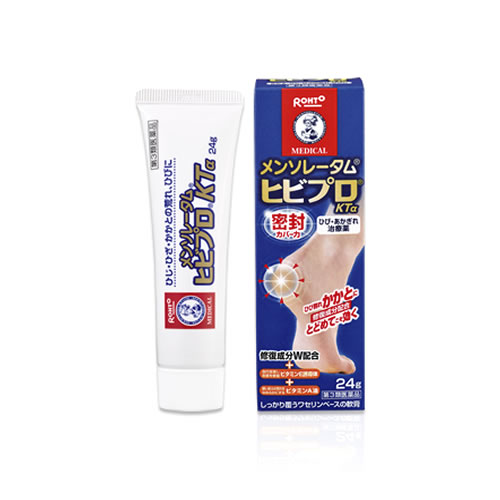 メンソレータム ヒビプロKT24gは、かかと・ひじ・ひざのしつこいあれやひび割れにとっても良く効きます。ひび治療を考え、選び抜いた有効成分が患部にしっかり密着し、つらいひび割れやあれを治します。