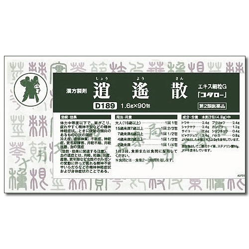 血液循環をよくしてホルモンのバランスを整える漢方薬です。生理前にはホルモンのアンバランスになり生じるイライラや不安感、気分の高揚といった女性特有の月経前緊張症にも用いられる処方でもあり、女性の保健薬としてもおすすめです。