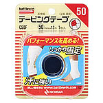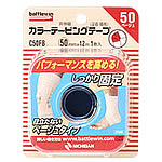 膝、肘、肩などの関節部位に最適な伸縮性テープ。粘着力が強く、ねんざやケガの応急手当にも適したアイテム。固定テープと併用することが多い。50mm×4m