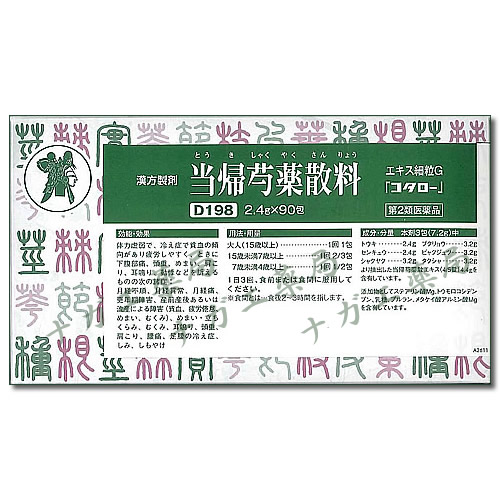 冷え性や貧血気味の方におすすめの漢方薬で体力がない方で生理不順があったり、生理が辛い、足腰が冷えた肩こり、頭痛、産前産後や流産時の貧血や身体のだるさに効果があります。