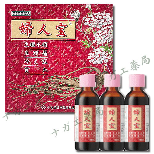 慢性的な冷えは我慢をしてしまいがちな症状ですが、月経異常、不妊症、腰痛などは冷えが原因の場合も多くあります。婦人宝はこの様な冷えを中心とした症状に効果のあるトウキ、センキュウ、オウギなど9種類の生薬が配合された飲みやすいシロップ剤で、生理不順、生理痛、冷え性、貧血によく効きます。